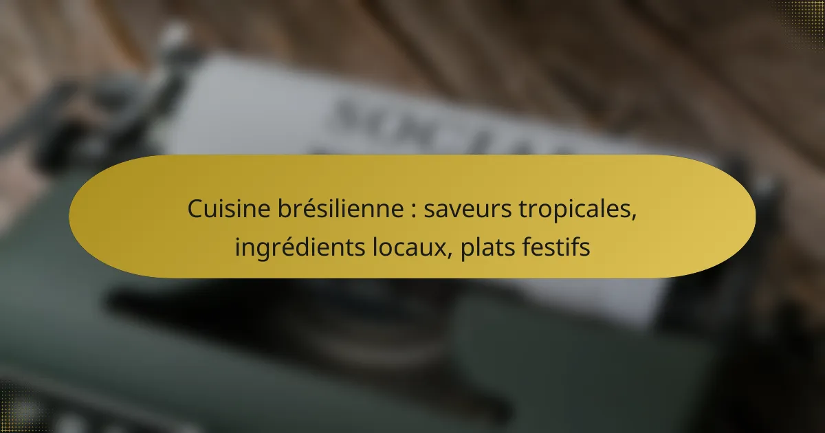 La cuisine brésilienne est un véritable festival de saveurs tropicales, où la richesse des ingrédients locaux se marie harmonieusement avec des influences culturelles variées. En intégrant des éléments autochtones, africains et européens, elle offre des plats festifs qui célèbrent l’identité vibrante du pays. Préparer ces délices nécessite une connaissance des techniques de cuisson et des ingrédients spécifiques, permettant ainsi de savourer l’essence même de cette gastronomie unique.