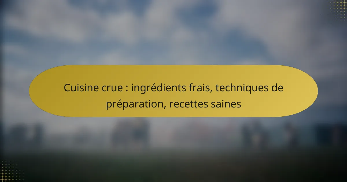 La cuisine crue met à l’honneur des ingrédients frais qui préservent leurs nutriments et leurs saveurs, tels que les fruits, légumes, noix et graines. En utilisant des techniques de préparation comme la déshydratation et la fermentation, elle permet de créer des plats sains et savoureux tout en respectant la qualité des aliments. Pour réussir vos recettes, il est essentiel de privilégier des ingrédients de saison et d’explorer différentes méthodes qui rehaussent les saveurs naturelles.