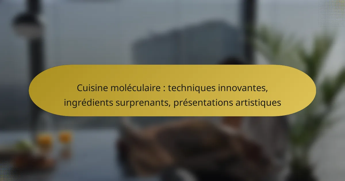 Les techniques innovantes de la cuisine moléculaire transforment la manière dont les aliments sont préparés et présentés. Elles utilisent des méthodes scientifiques pour créer des textures et des saveurs uniques, offrant une expérience culinaire inédite.