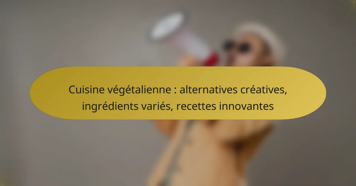 Les alternatives créatives en cuisine végétalienne incluent une variété d’ingrédients et de techniques qui permettent de remplacer les produits d’origine animale tout en offrant des saveurs et des textures riches. Ces substitutions favorisent une alimentation saine et durable, tout en encourageant l’innovation culinaire.