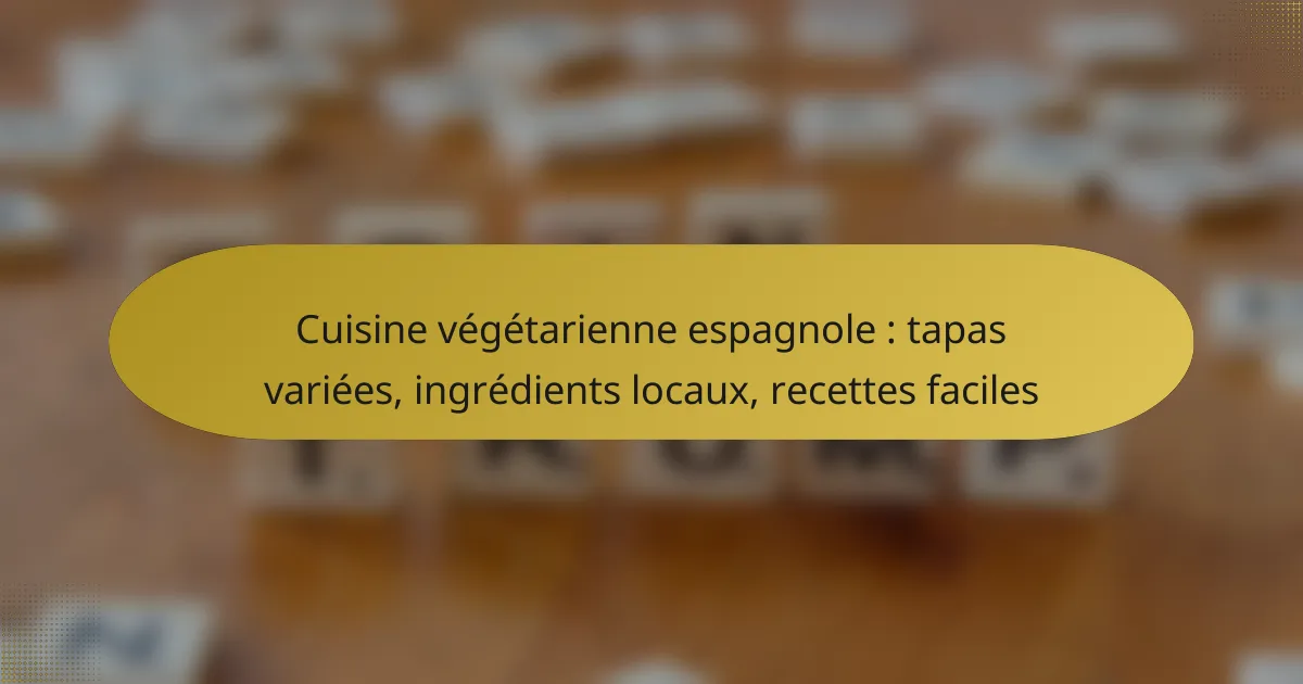 La cuisine végétarienne espagnole célèbre la fraîcheur des ingrédients locaux et offre une multitude de plats savoureux. Avec des recettes simples et accessibles, elle permet de découvrir la richesse des traditions culinaires espagnoles à travers des tapas variées. Que ce soit des légumes de saison ou des légumineuses, chaque plat reflète l’authenticité et la convivialité de la gastronomie ibérique.